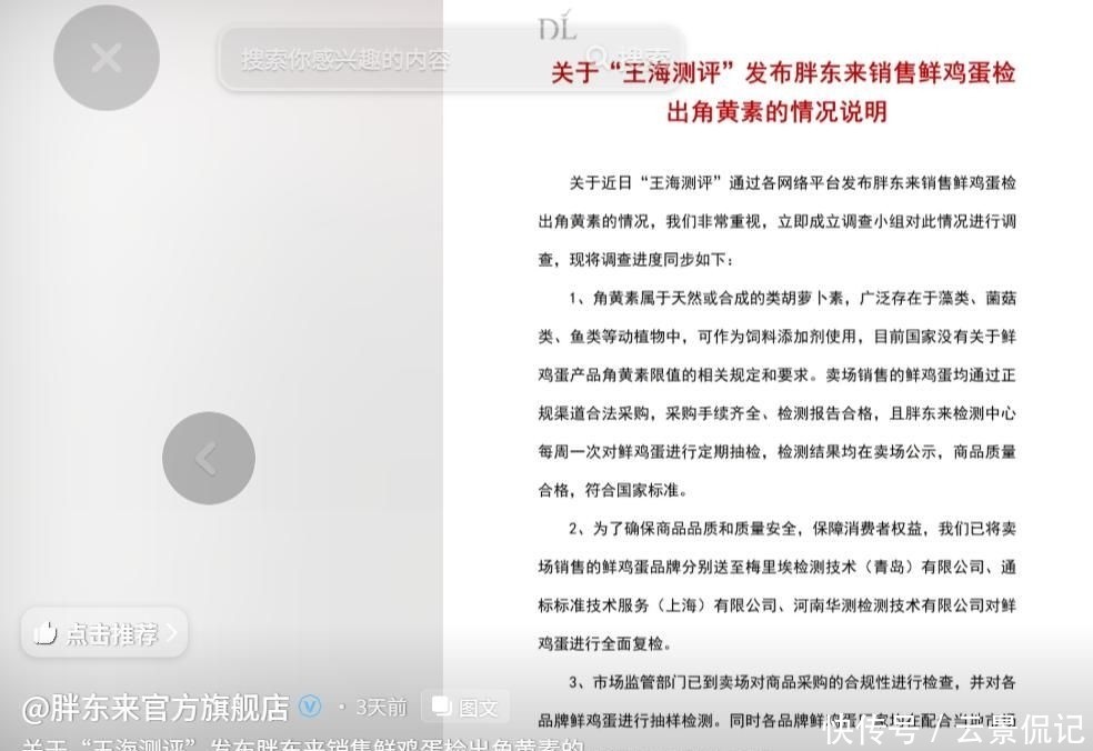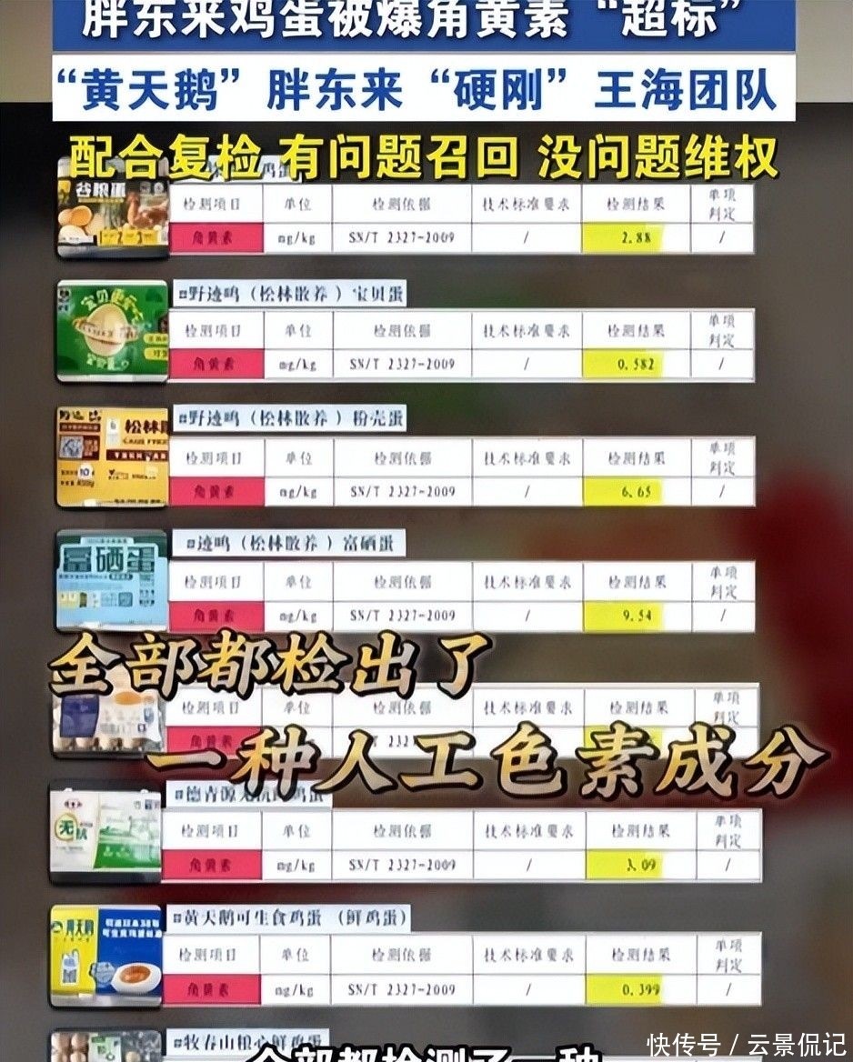 正当舆论焦点稍作转移之时,知名打假人王海团队于3月13日突然发难,直指胖东来销售的黄天鹅品牌鸡蛋检出角黄素成分,并质疑其“自然金黄蛋黄”的宣传用语涉嫌虚假陈述。